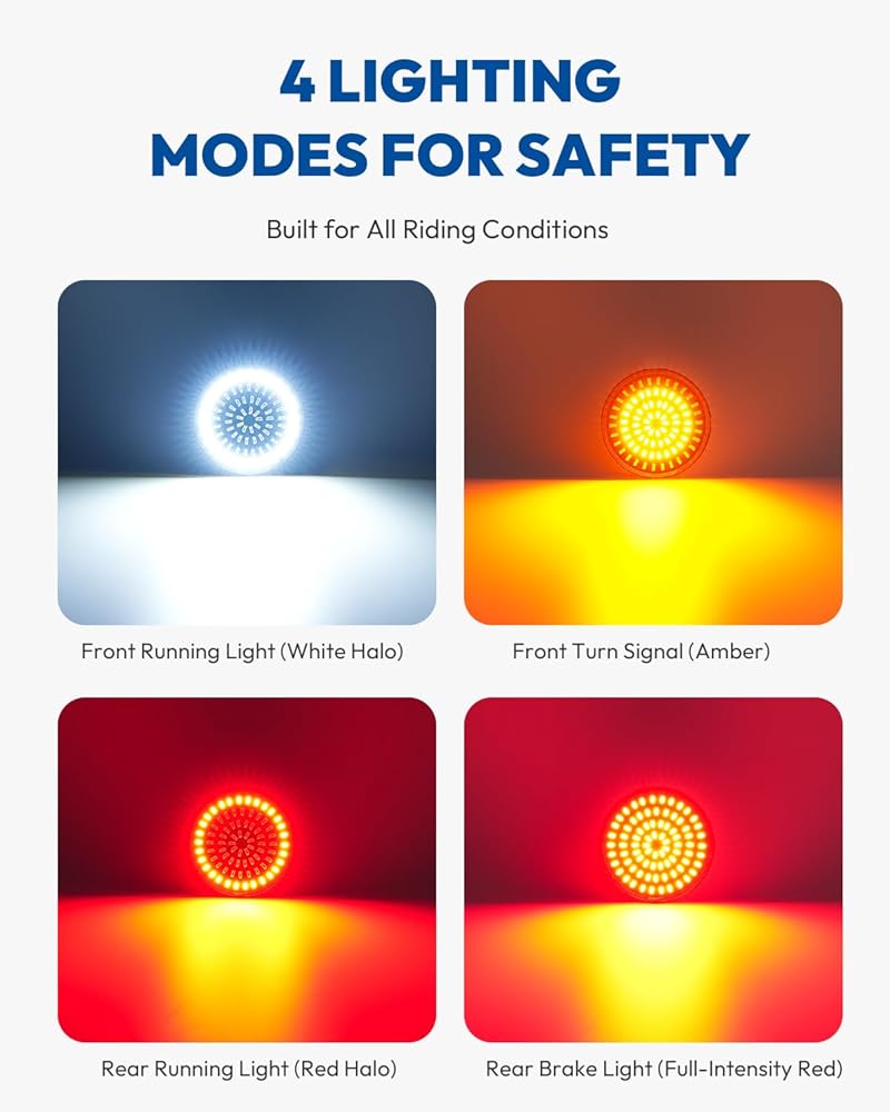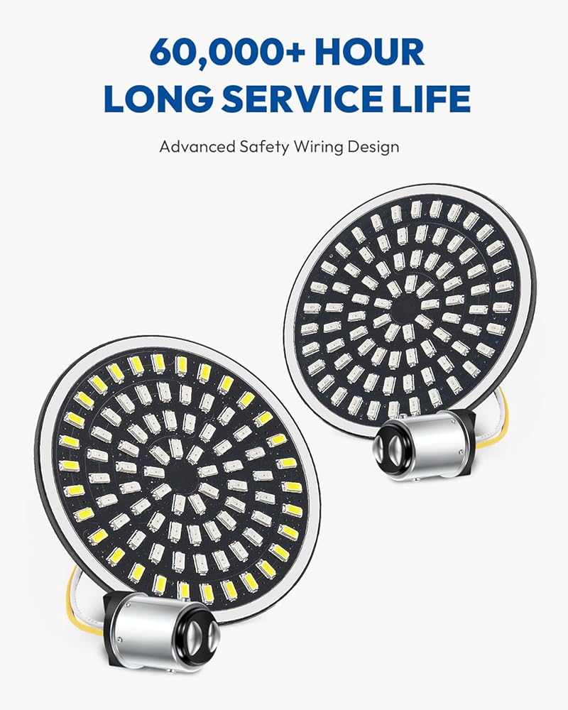【ENGINEERED FOR A 60,000-HOUR】Precision-engineered with an advanced protected circuit board, these front rear turn signals feature overload protection, minimal power draw, and superior heat management to prevent failure. This robust design ensures a lifespan exceeding 60,000 hours for dependable, maintenance-free performance.