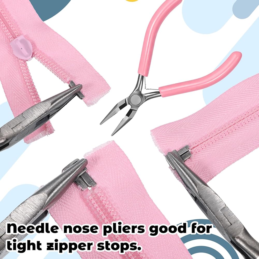 【Precise Multi-Purpose Use】Beyond zipper repair, this kit serves as a versatile multi-purpose tool set. The needle-nose plier, with its fine tip, is excellent for detailed work in DIY jewelry making, bending soft wires, or handling small components. The end-cutting plier can cleanly cut cable ties, guitar strings, and soft to medium gauge wires. This dual functionality transforms the zipper repair pliers into a valuable addition to any home maintenance or crafting toolkit, offering utility far beyond its primary purpose