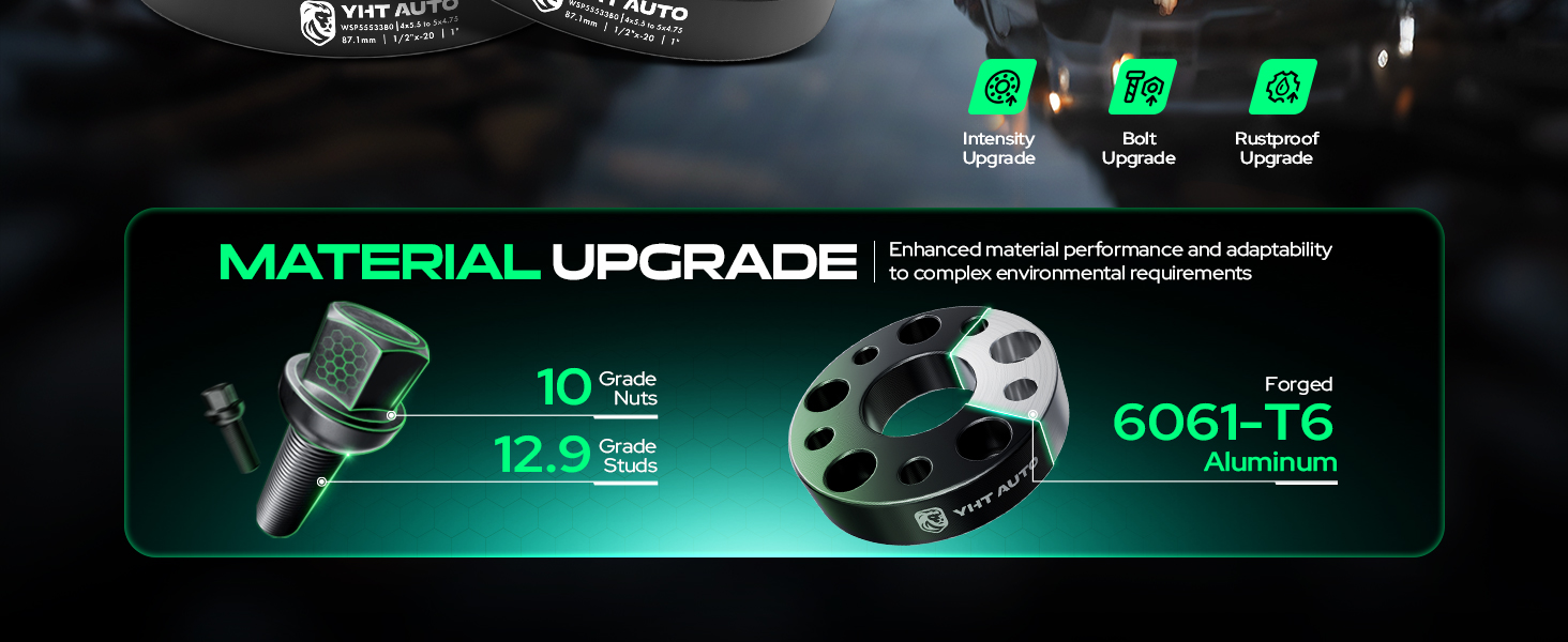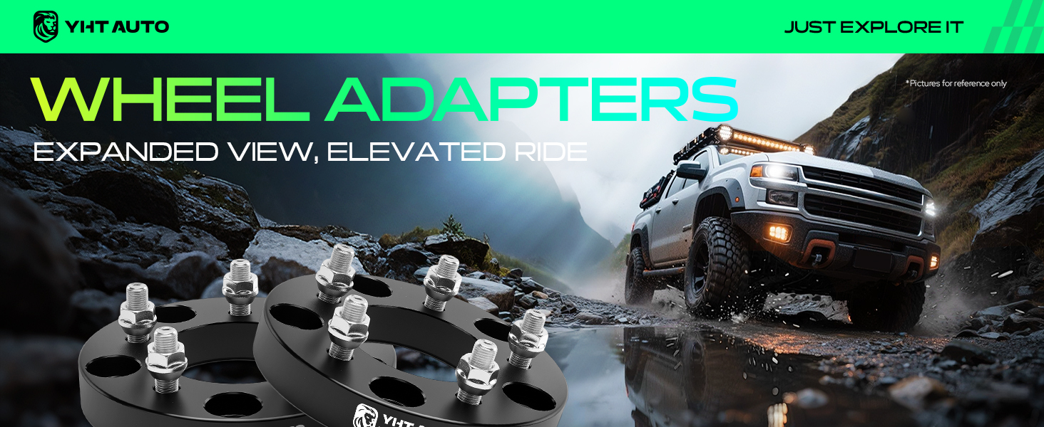 About the Tire adapters: 5x4.75" wheel bolt pattern, 5x5.5" vehicle bolt pattern | The center bore of the vehicle must be less than 87.1 mm | 1 inch thickness, this is also the size at which the wheels will be pushed out | 1/2"-20 Studs & Lug Nuts| Recommended torque:75-85 FT/LBS | 12.9 grade studs, highest grade of bolt strength