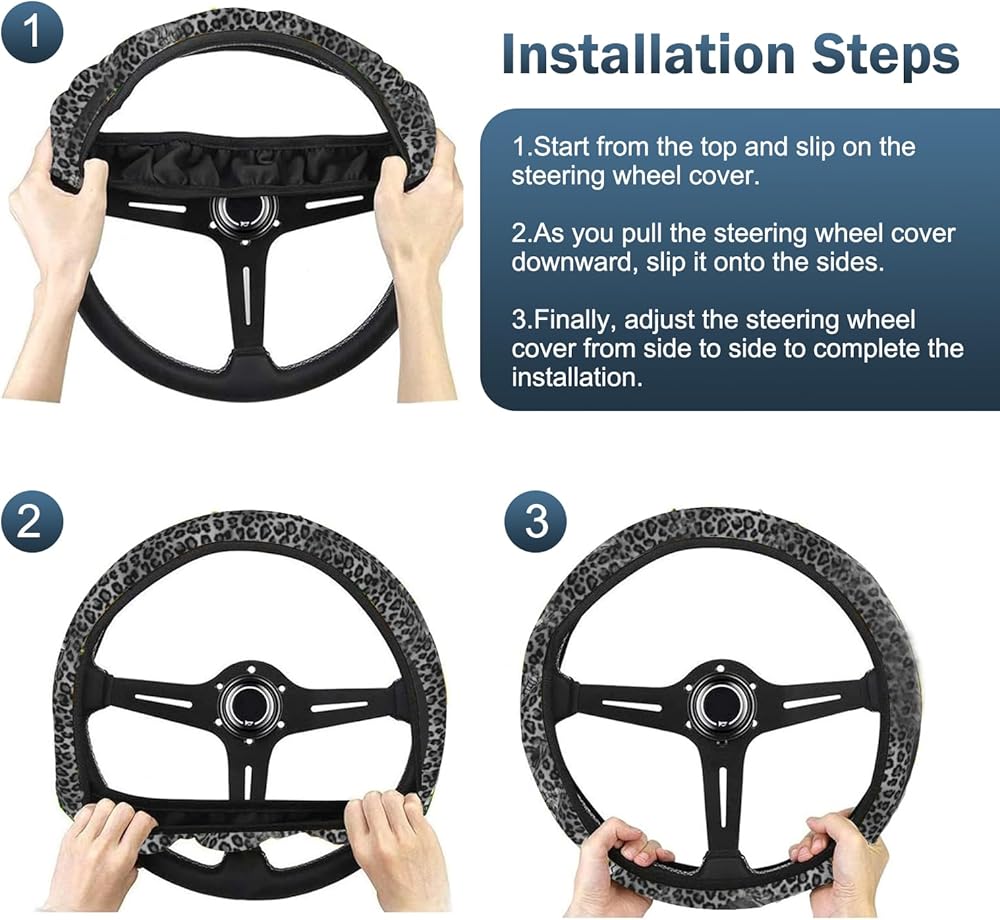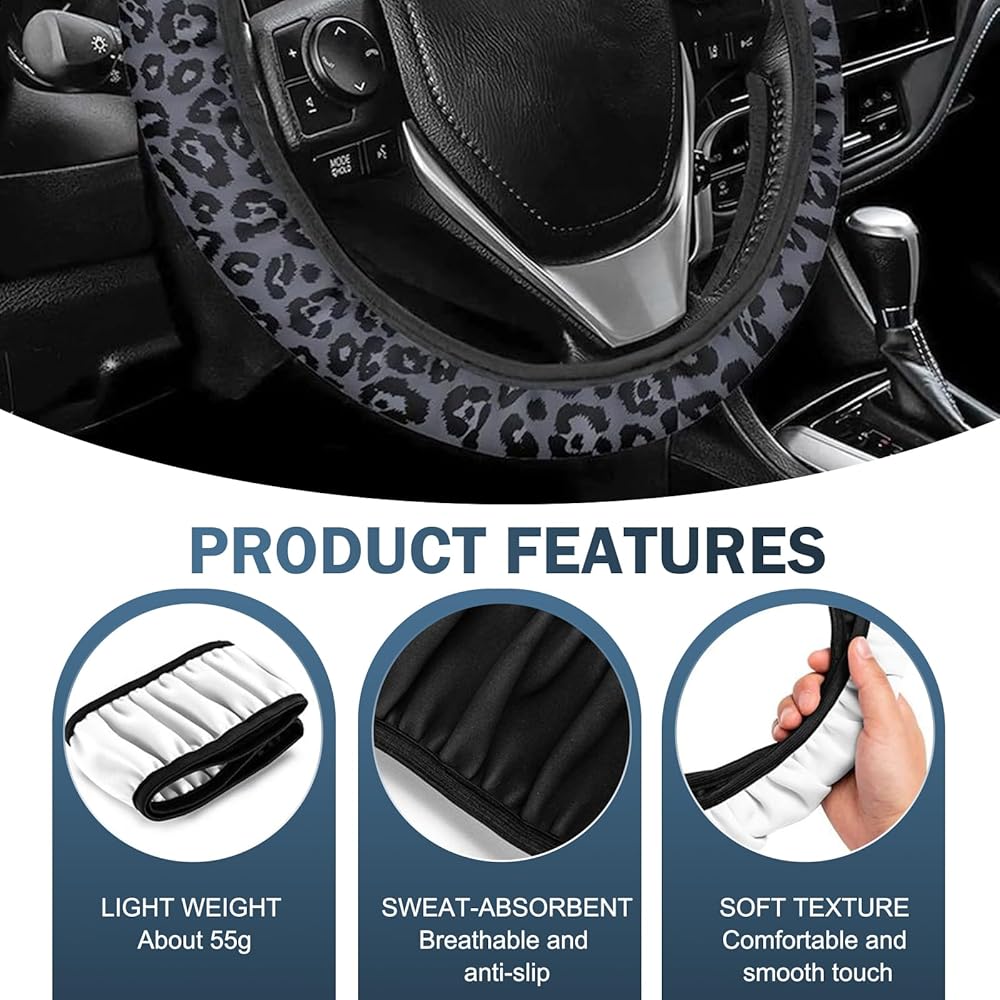 1.This steering wheel cover features a leopard print pattern, offering a wild and fashionable look. It is highly elastic, providing a comfortable grip, and is sweat-absorbent and slip-resistant.