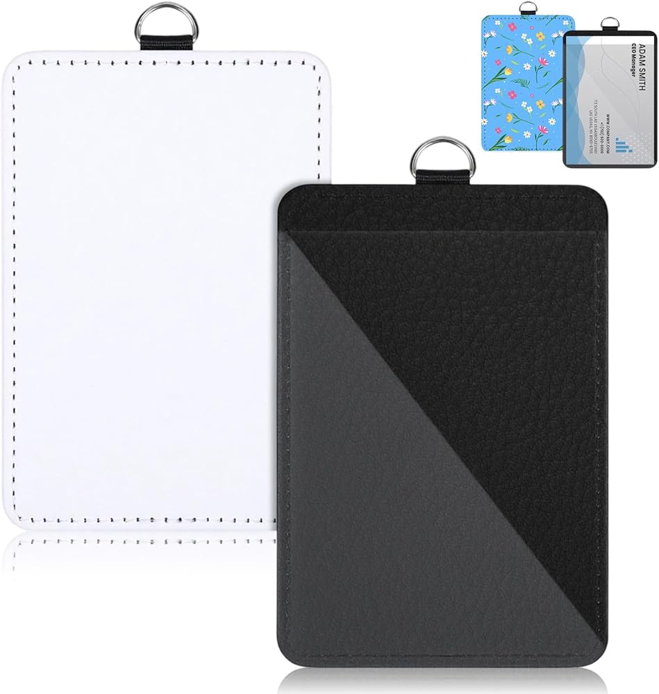 2-Pack Blank ID Badge Holders for Sublimation - Waterproof PU Leather, Heat Transfer Ready Card Blanks for Custom Work Badges, Office, Events & Hospitals