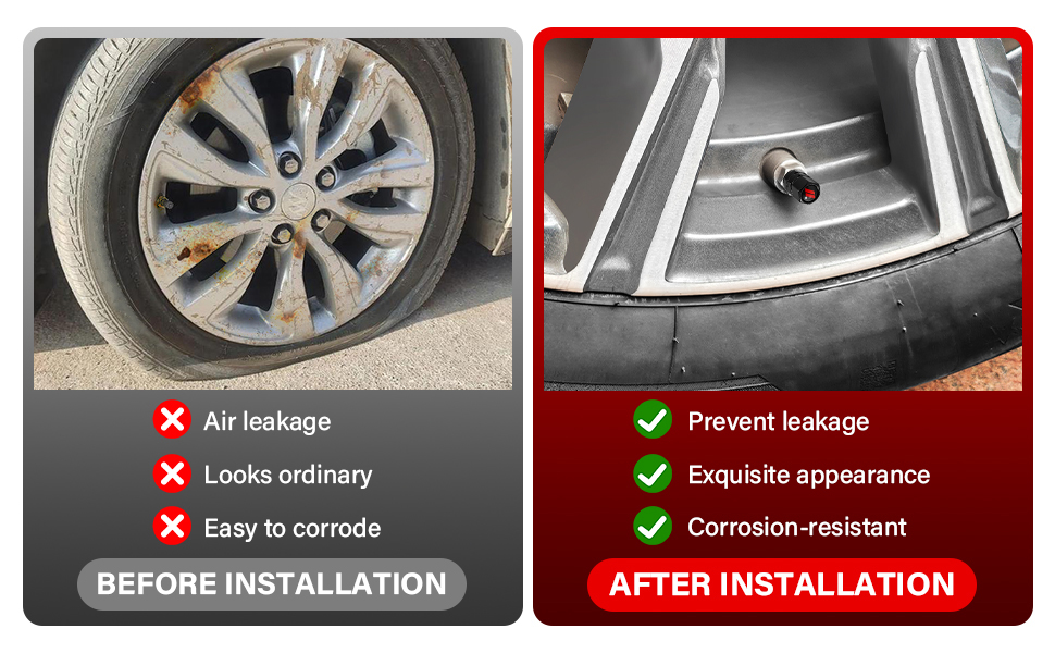 Easy Installation: It's easy to install and no tools are required. Just by hand, you can easily tighten or remove the tire valve caps