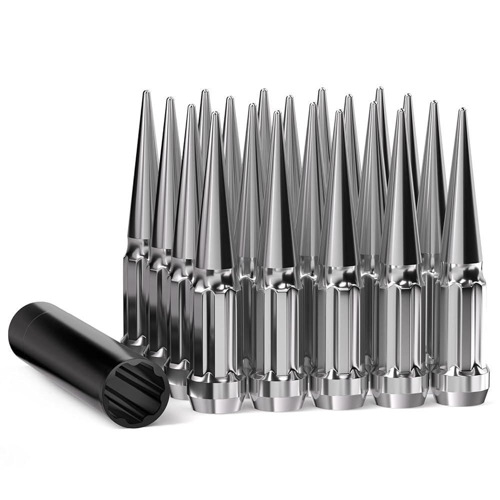 Features - Our 1 2-20 chrome Spike lug nuts are made of high-quality steel. After plating and 72 hours of salt spray test, apply anti-rust oil. Does not rust and fade easily. The Solid one-piece design is safer than the two-piece design, preventing wheel nuts cracking and wheel drops.