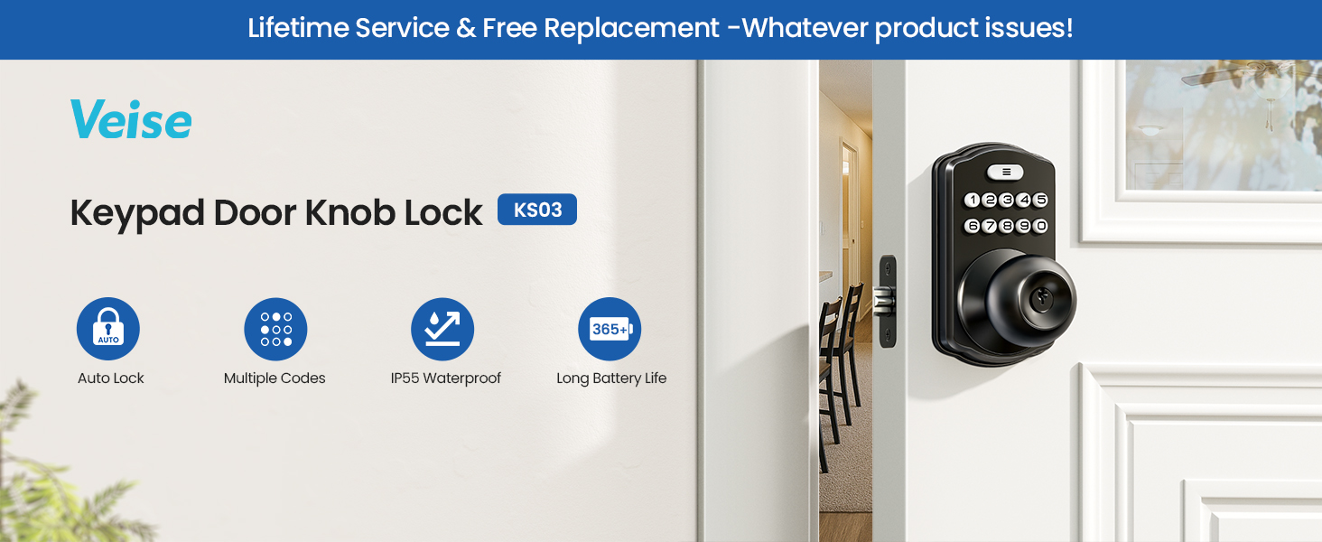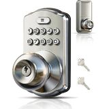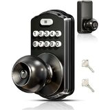 Veise Keypad Door Knob Lock, Keyless Entry Digital Lock with Handle, Electronic Smart Knob for Front Door & Bedroom, Easy Install, Auto Lock, Passage Mode, Anti-Peeping Password, Matte Black