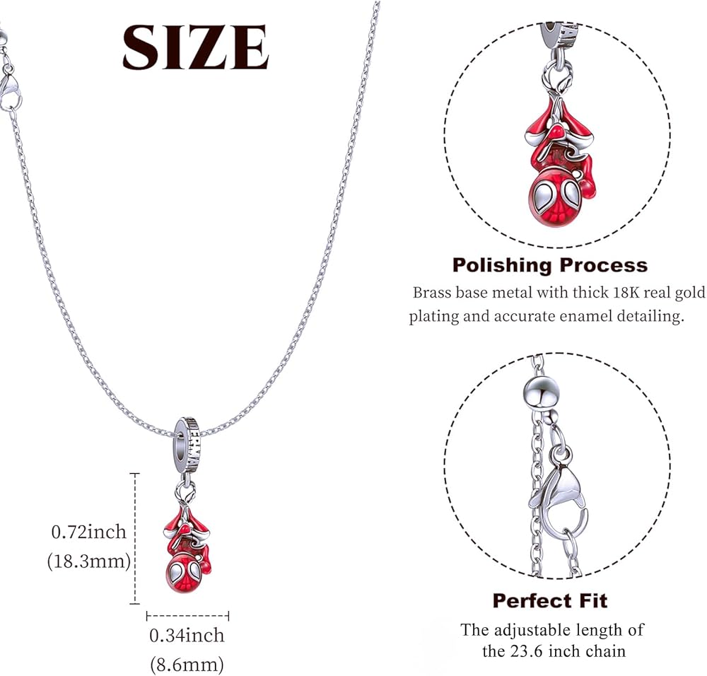 Spiderman Necklace Set for Women and Men – Red & Black Adjustable Pendant Chain with Gift Box