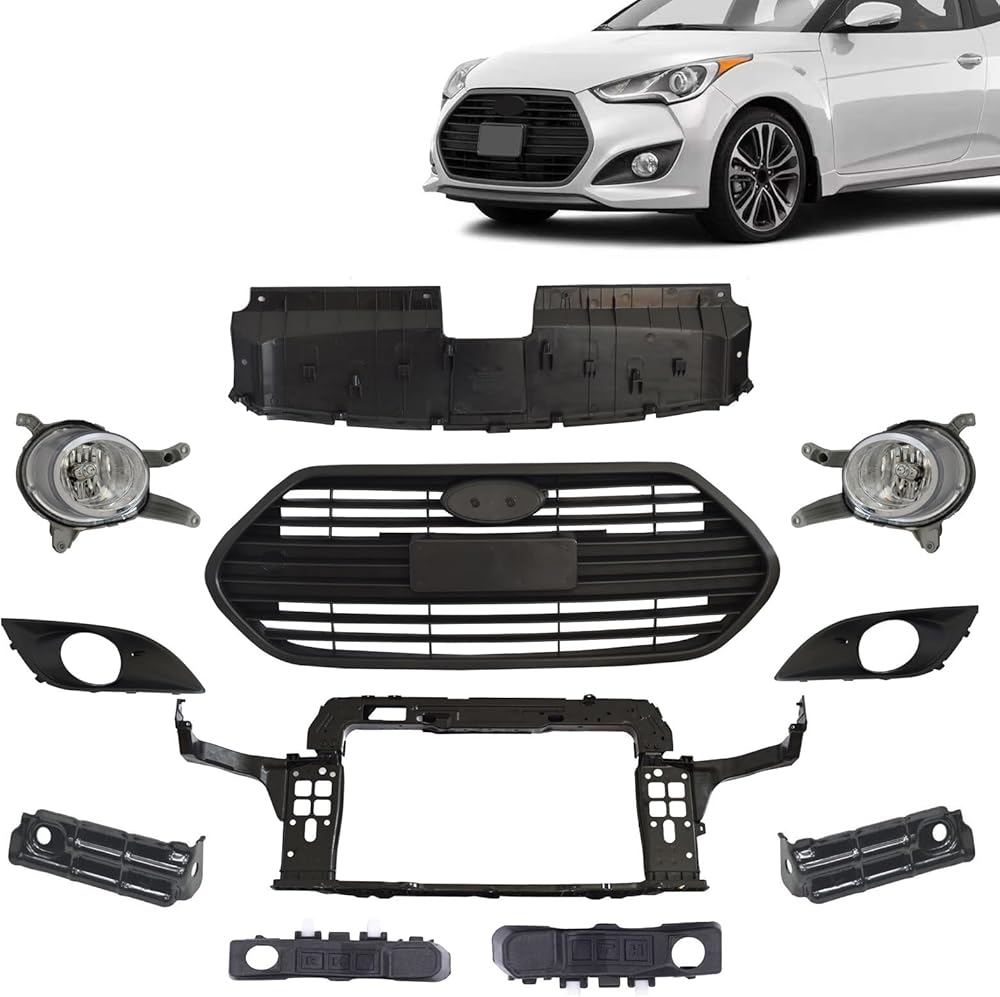 JX RACING Front Bumper Grille Fog Lamp Assembly Compatible with Hyundai Veloster Turbo 2013-2016 Radiator Support Cover Fog Lamp W/Bracket for 863532V500 865612V500 HY2593153