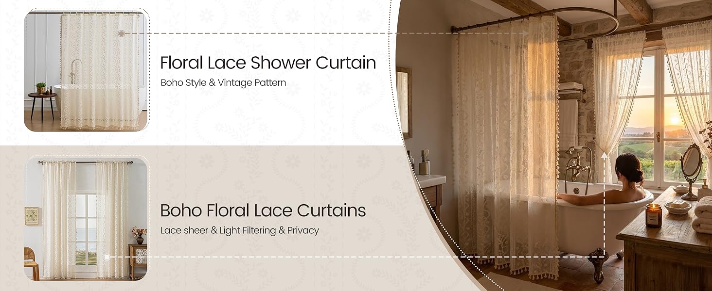 Durable Polyester Boho Curtains:Made of 100% polyester with nice drape,recyclable and environmentally friendly fabrics,resists fading, wrinkles, and shrinkage better than pure natural fibers.Seamlessly blends bohemian floral pattern with victorian aesthetics,durable for long time to use