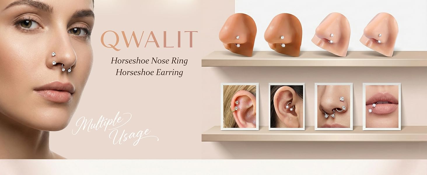 Using - Used as silver nose ring, 20g nose ring, horseshoe nose ring, silver nose jewelry, 20 gauge nose ring, half hoop Earring, double gem horseshoe nose ring, horse shoe nose rings for women, helix earrings, cartilage piercing jewelry, 20g horseshoe nose ring, surgical steel nose ring, horseshoe nose ring 20g, horse shoe nose ring 7mm