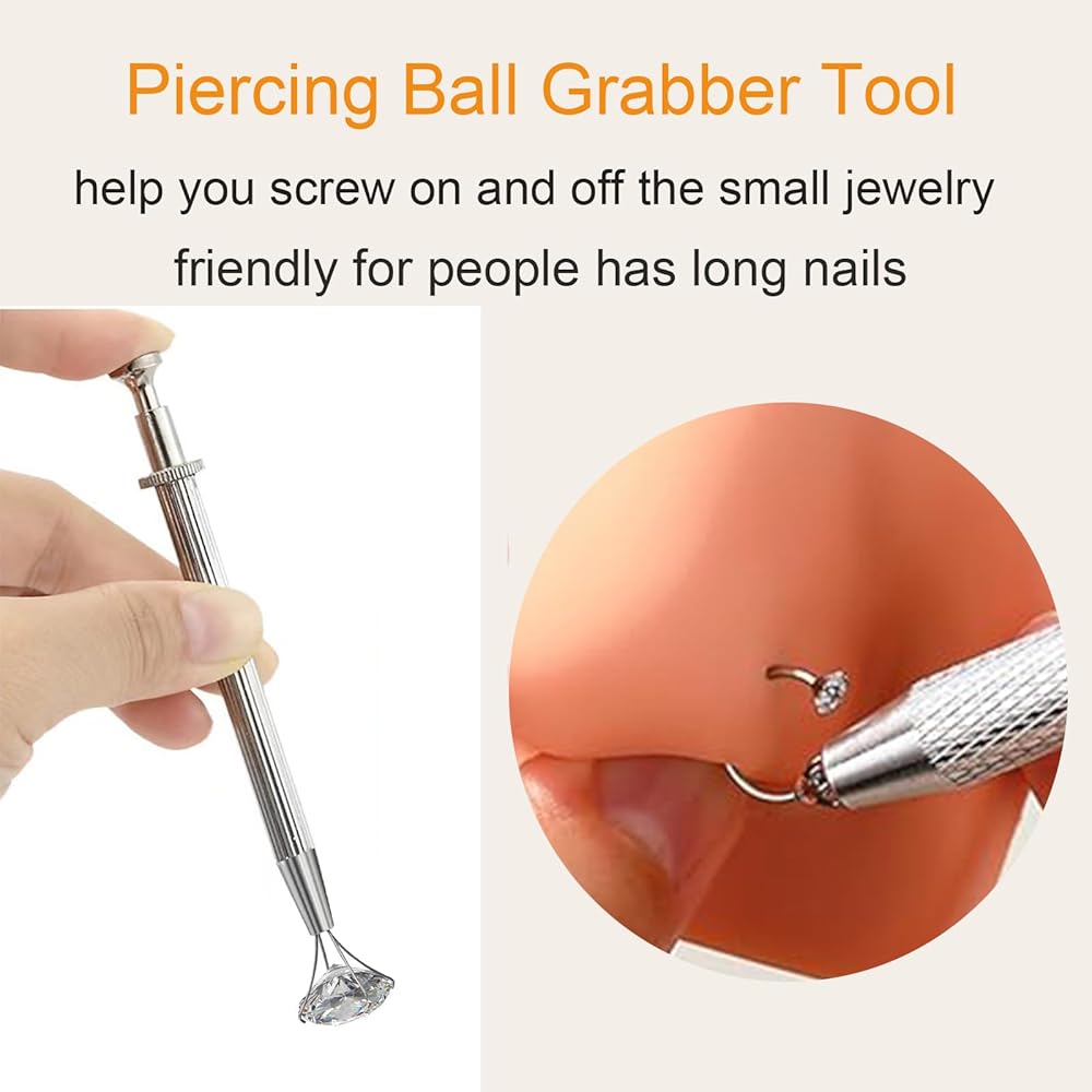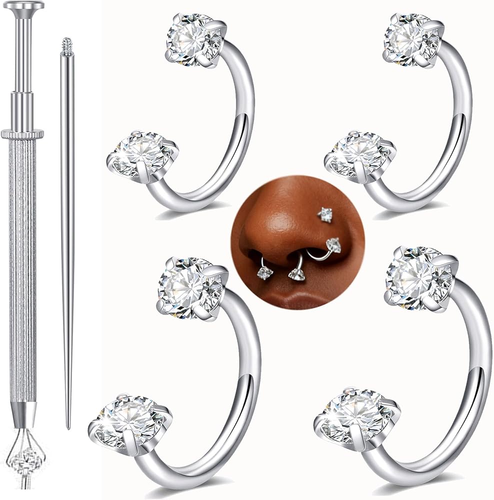 Item Contain - 2pairs silver 20g horseshoe nose ring for women + 1pcs piercing taper insertion tool piercing threader tool+ 1pcs piercing ball grabber tool piercing tools for changing jewelry