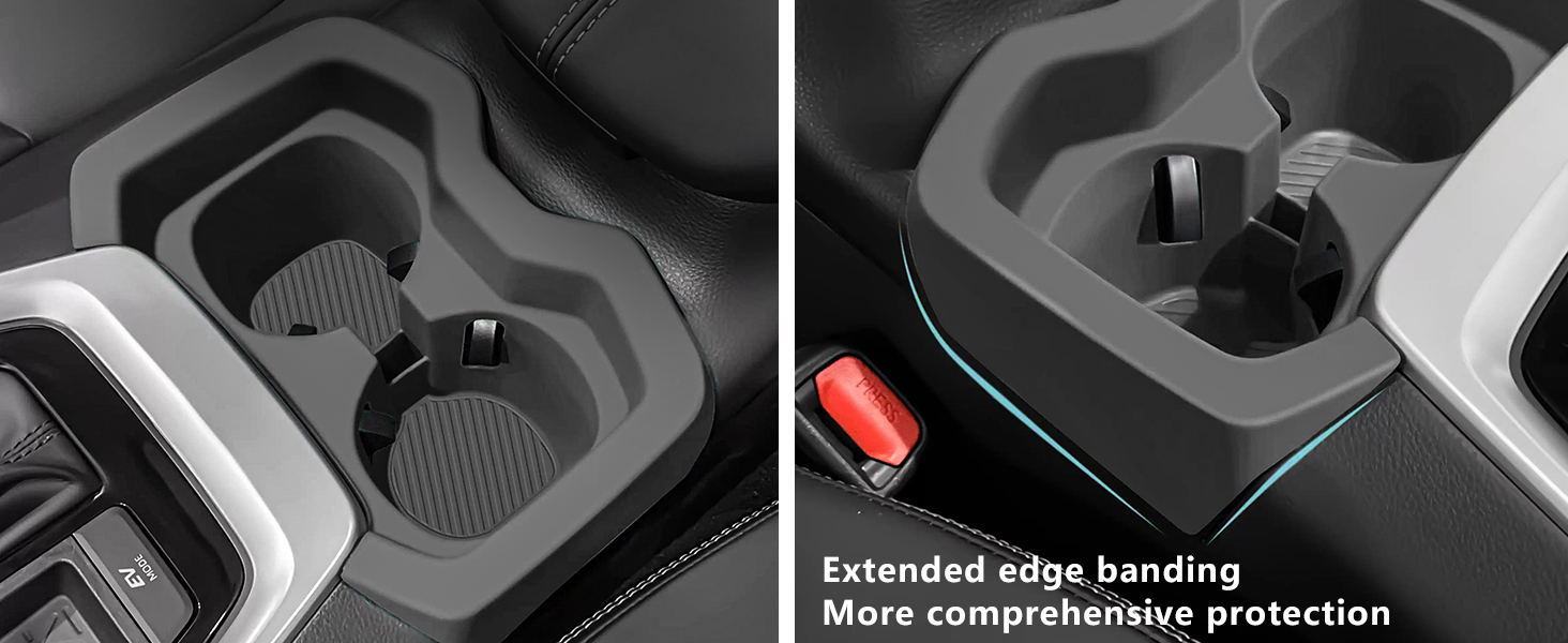 High-End Design: Featuring a silicone pattern, it aesthetically adorns the center console cup holder and enhances the overall class. The clear tactile texture further enhances its appeal.