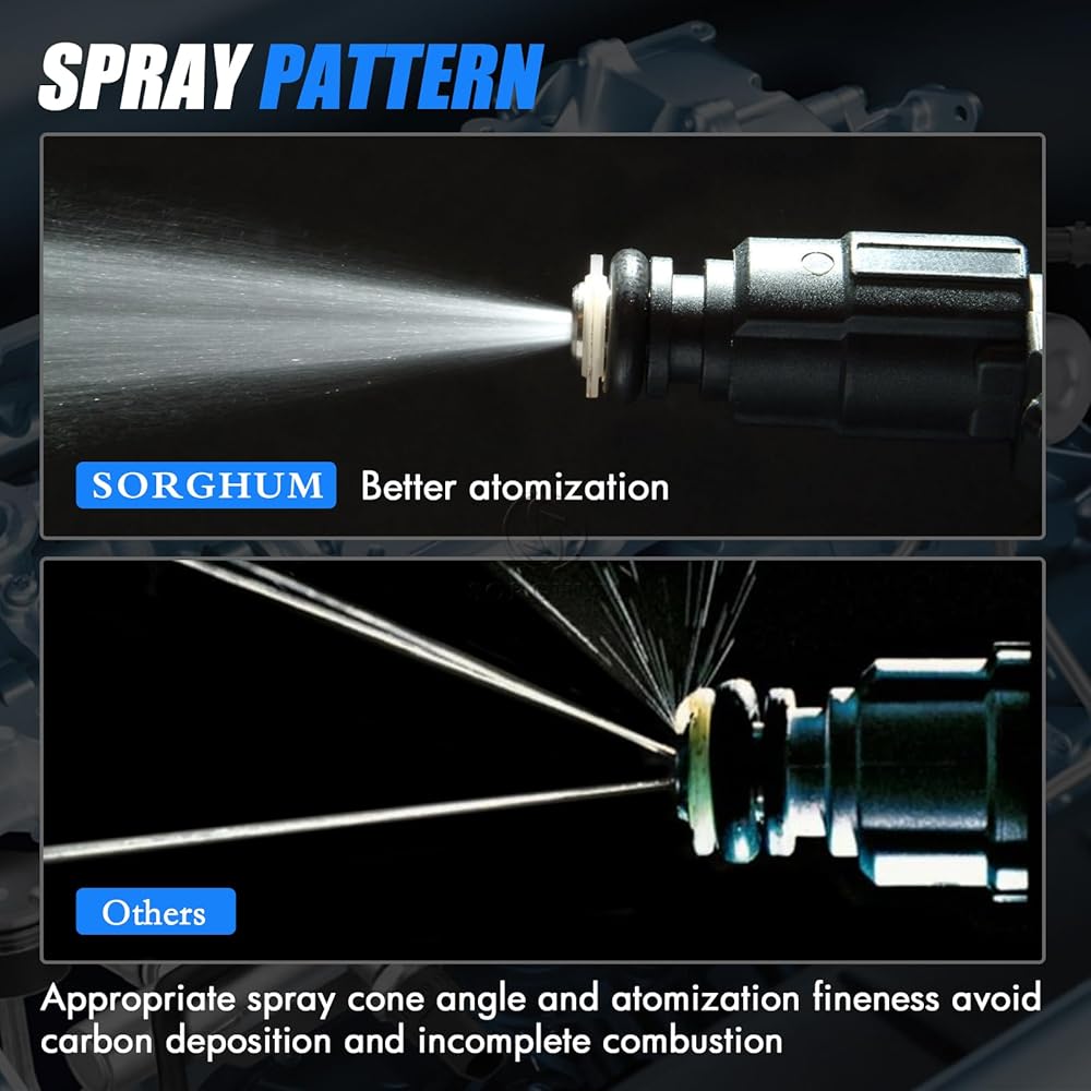 [Performance] - Sorghum Fuel injector excel in spray pattern optimization and atomization.The high-temperature Viton external O-ring enables proper sealing under extreme conditions. Our fuel injector replacement incorporate the latest advancements in fuel delivery technology, ensuring that you benefit from the most efficient and effective solutions available