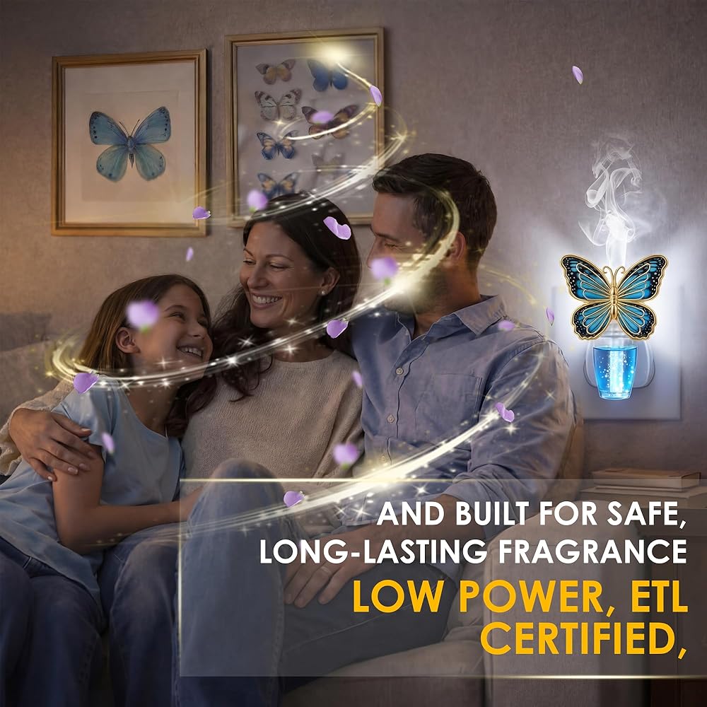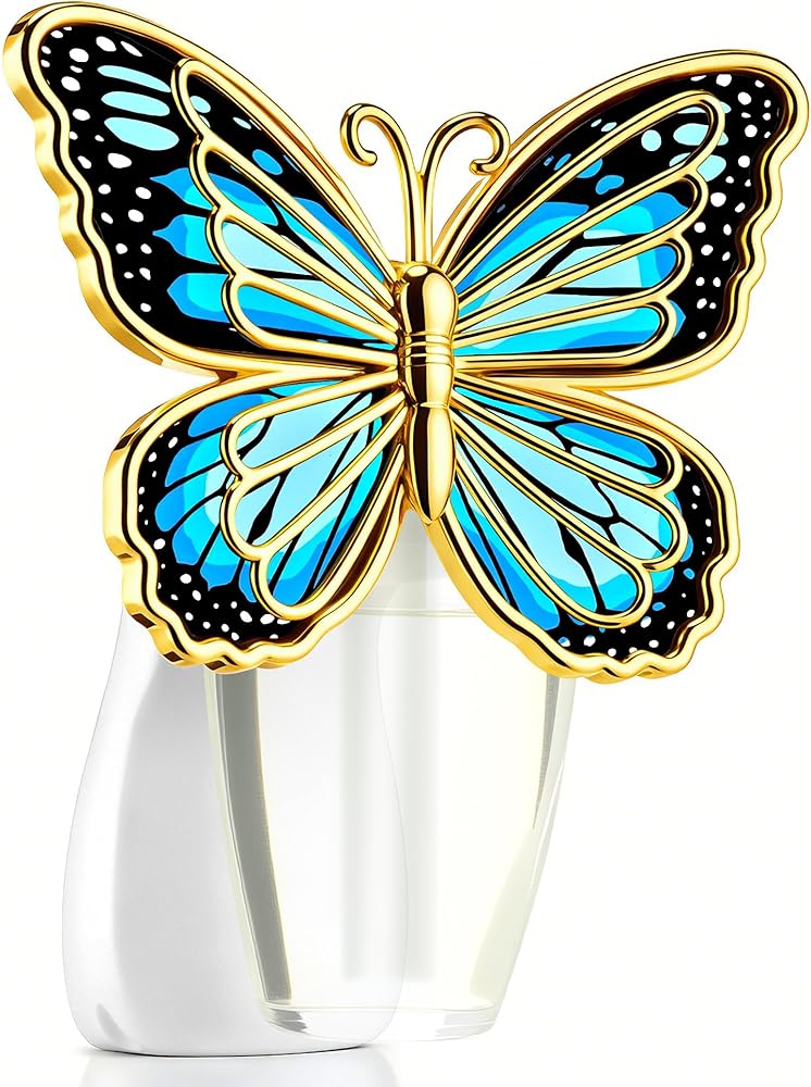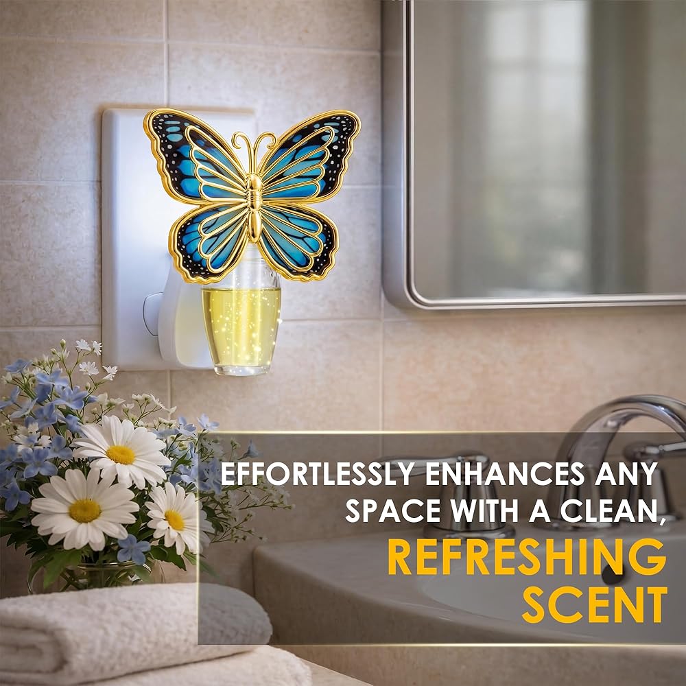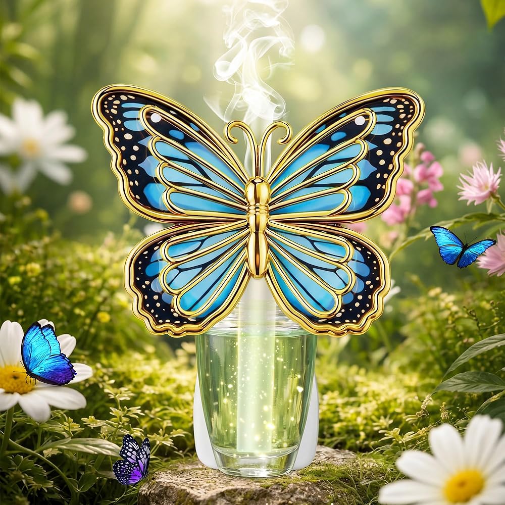 Blue Butterfly Design · Calm · Clean · Relaxing: Inspired by the beauty of nature, this blue butterfly fragrance plug brings a calm, clean, and relaxing atmosphere to your living space. The elegant butterfly wall plug features delicate wings and a refined decorative design that enhances any room. More than a plug-in air freshener, it serves as a decorative fragrance diffuser and wall décor accent, adding charm, warmth, and a soothing scent experience to your home