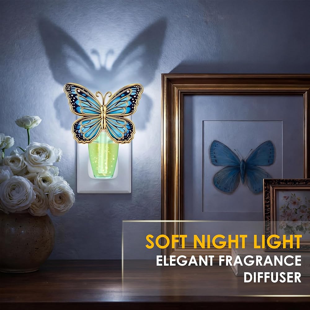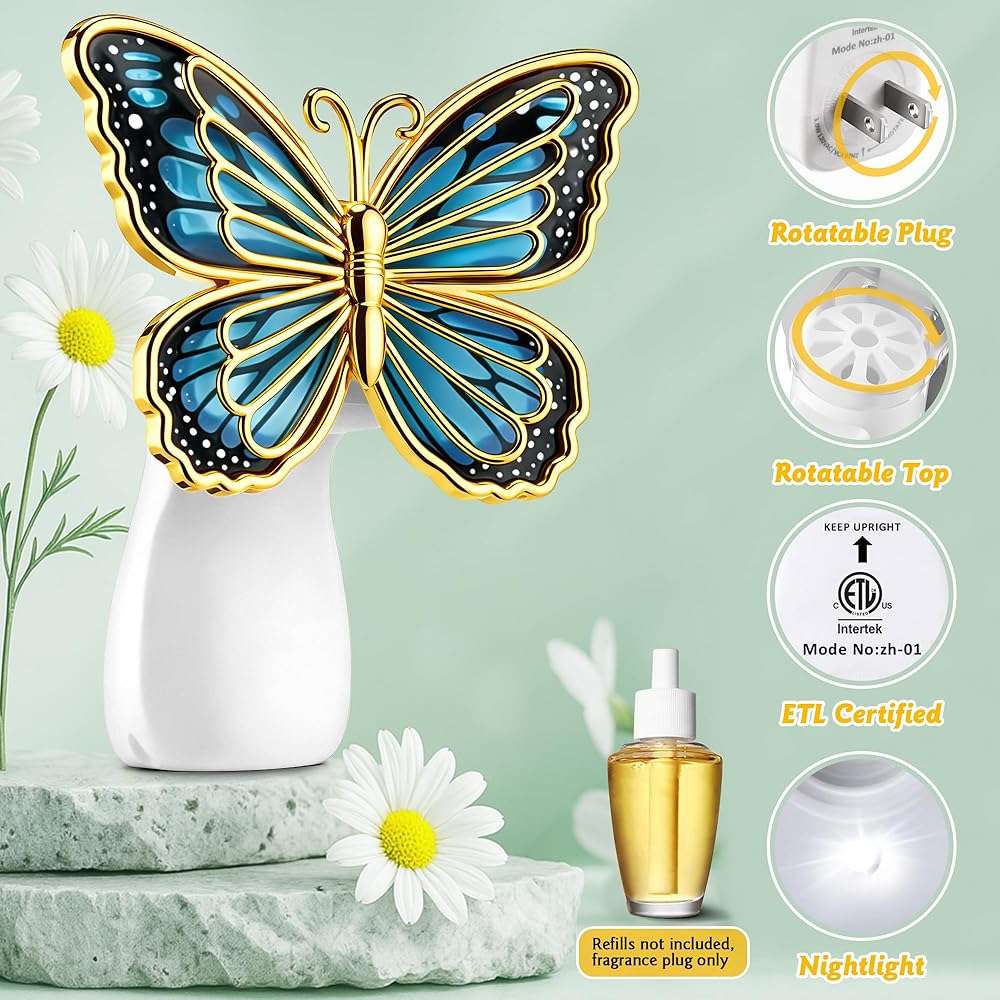 Wall Fragrance Plug in Compatible with Bath and Body Works WallFlower, Scent Diffuser with Night Light, ETL Certified, Long Lasting Scented Warmer Diffuser Home Office (Blue,Butterfly)