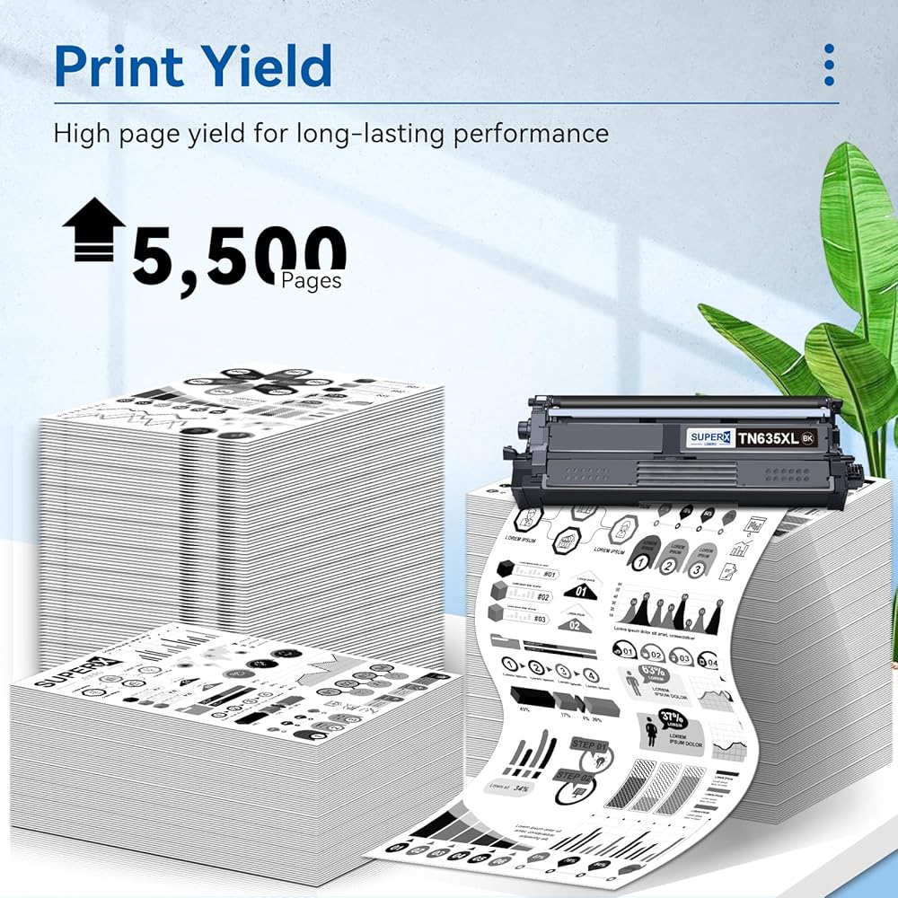 Page Yield: Up to 5,500 pages per TN635XL Black toner cartridges (At 5% coverage on Letter/A4)