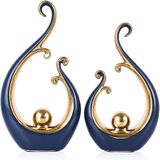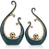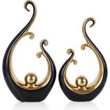 Modern abstract design · Elevate your space's sophistication: This ceramic abstract sculpture set illuminates your home with flowing lines and a striking gold-black color contrast, showcasing contemporary decorative aesthetics. Whether placed in living room decor, coffee table accents, TV cabinet displays, or bookshelf arrangements, they effortlessly create a refined atmosphere, adding artistic depth and dimension to any space.