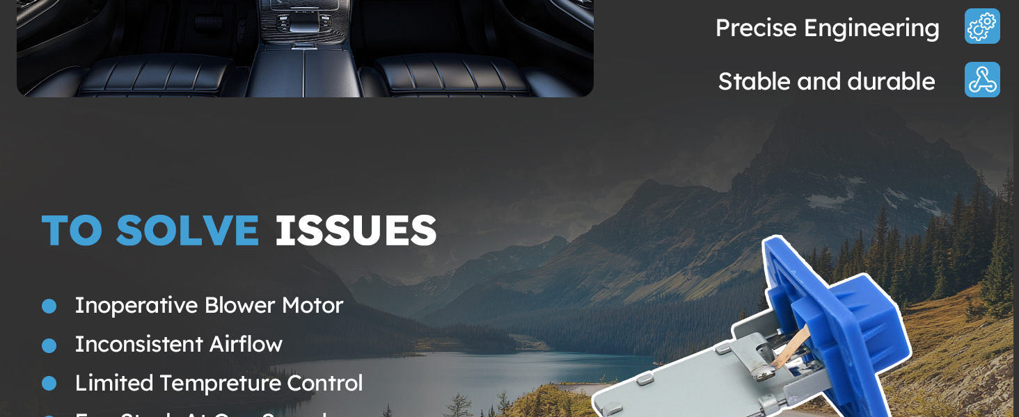 【Function】: The blower motor resistor controls the fan speed of the blower motor by changing the resistance. If your blower motor is stuck at a certain speed and the fan does not work under certain settings, the vehicle ventilation port will not blow air. This blower motor resistor can perfectly solve this problem.