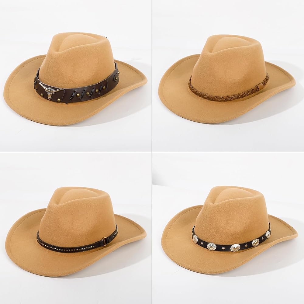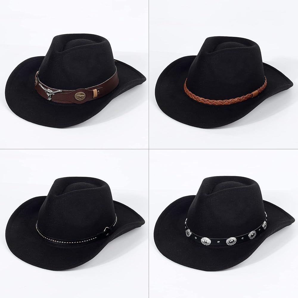 【2 Pack Western Cowboy Hat】4 different styles of belts, allowing you to express your favorite color in different styles. You can wear them with your partner, friends, and family.