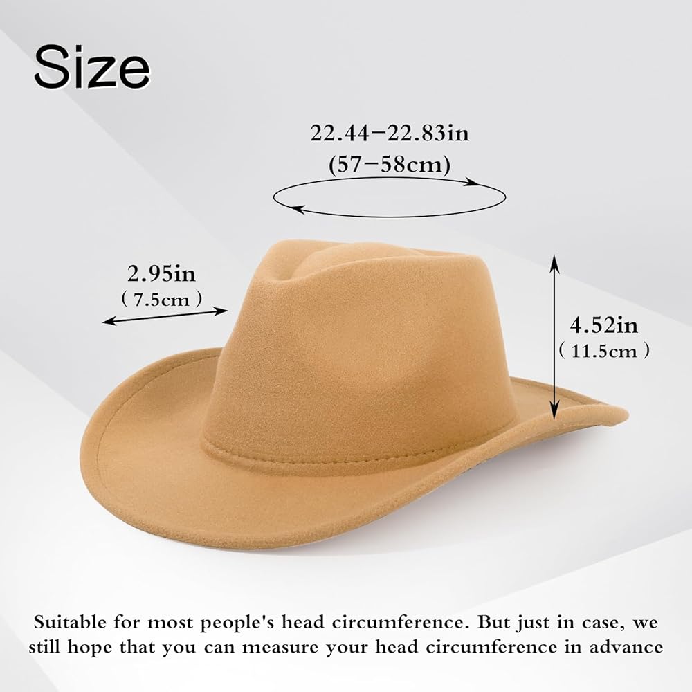 【One Size Fit Most People】The cowgirl hat head measurement: from 22.44" to 22.83" . You can adjust the size of the fedora hat for a perfect fit through the drawstrings inside the sweatband.