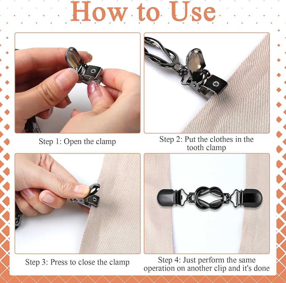 1.This shirt clips measures approximately 4.72 inches long, fits most types of clothing, and is perfectly suitable for your daily use.