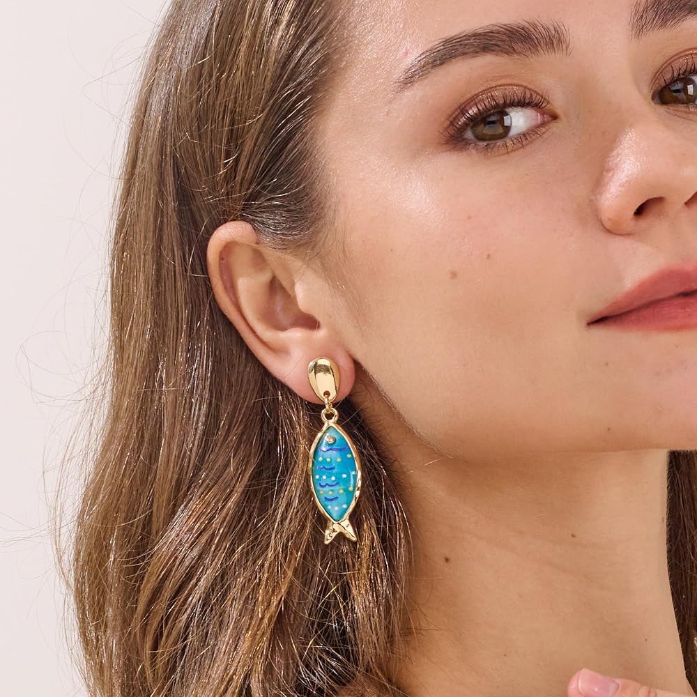 Fish Earrings: Fish have symbolic meanings in many cultures, often representing abundance, wealth, faith, and good luck. These exquisite colored earrings can add just the right amount of ocean magic to your jewelry collection