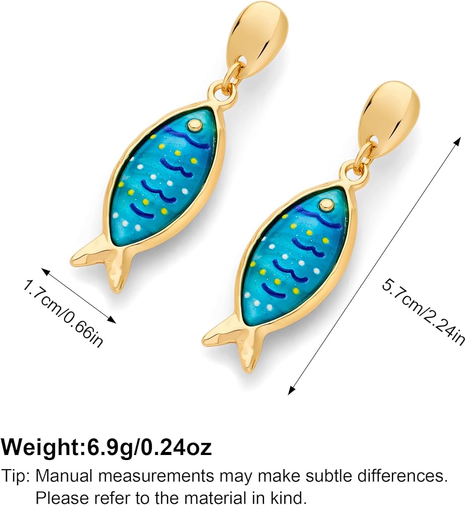 Size: These cute fish earrings are 0.66 inches wide, 2.24 inches high, and weigh only 0.24 ounces. They are of moderate size and very lightweight