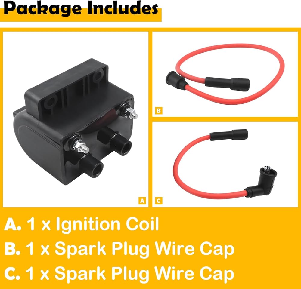Complete Kit Included: Comes with 1 x ignition coil and 2 x spark plug wire caps, providing a full solution for worn or failing ignition components