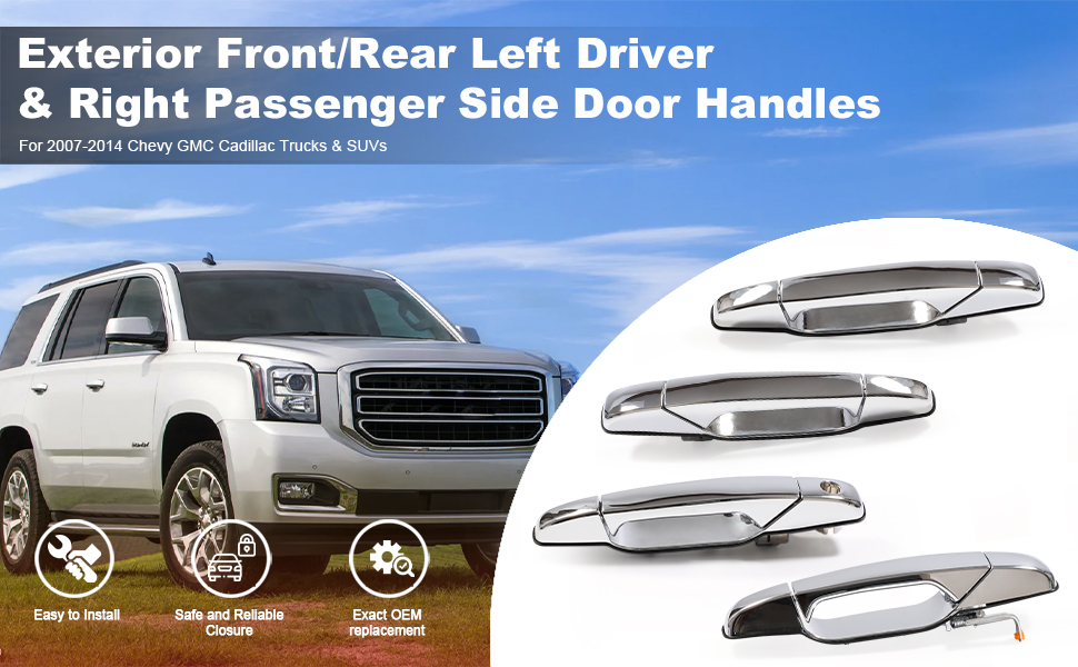 Compatible:Exterior door handle compatible with 2007-2014 Chevy Avalanche/Silverado/Suburban/Tahoe,2007-2014 GMC Sierra/Yukon,2007-2014 Escalade,See below for the full vehicle compatible list.