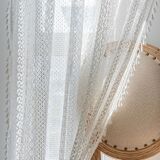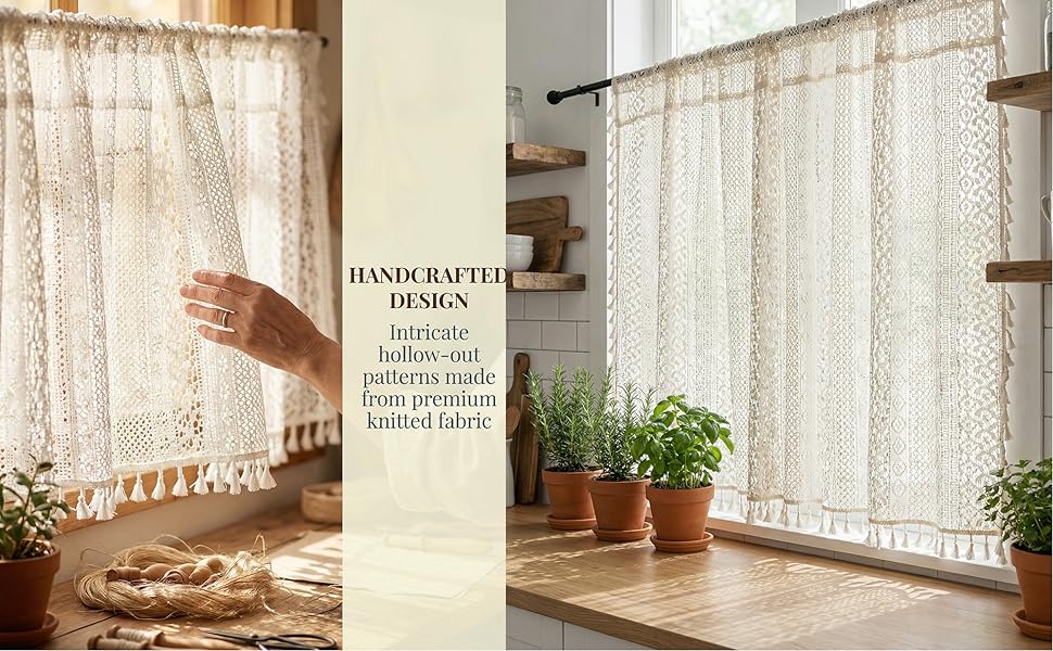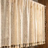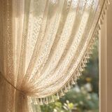 PREMIUM DESIGN: Handcrafted crochet curtain panel made from high-quality knitted fabric featuring intricate hollow-out patterns and decorative tassels for elegant vintage charm