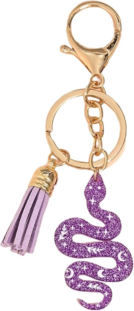ZOONAI Cute Snake Keychain with Tassel Pendant for Handbags,Glitter Car Keyring Purse Charms for Women