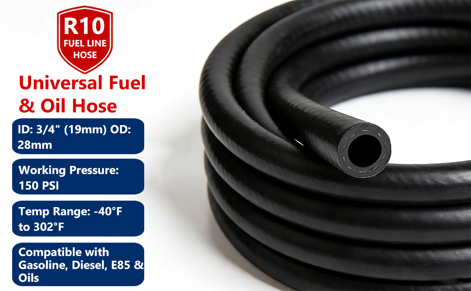 ⭐For Fuel & Fluid Lines - A direct-fit 3/4 fuel hose for supply/return lines, fuel pumps, and also suitable as a 3/4 hydraulic hose or 3/4 oil cooler hose for various engine bay applications.