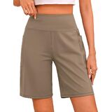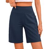 Stretchy & Soft: Ultra Buttery soft,4-way stretch and non-see-through fabric ensure breathability and comfort. The lightweight material is moisture-wicking, enjoy enhanced flexibility and a greater range of motion. Perfect Knee Length: These 9" bermuda long shorts fit well