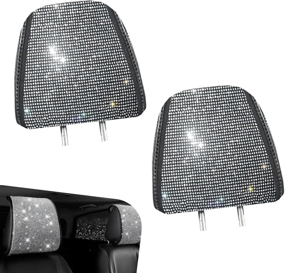 2 PCS Bling Rhinestone Car Headrest Covers: This set of headrest covers is adorned with shiny rhinestones, adding a luxurious and stylish touch to car interiors. The bling design catches light beautifully, making the vehicle's interior stand out with a glamorous vibe.