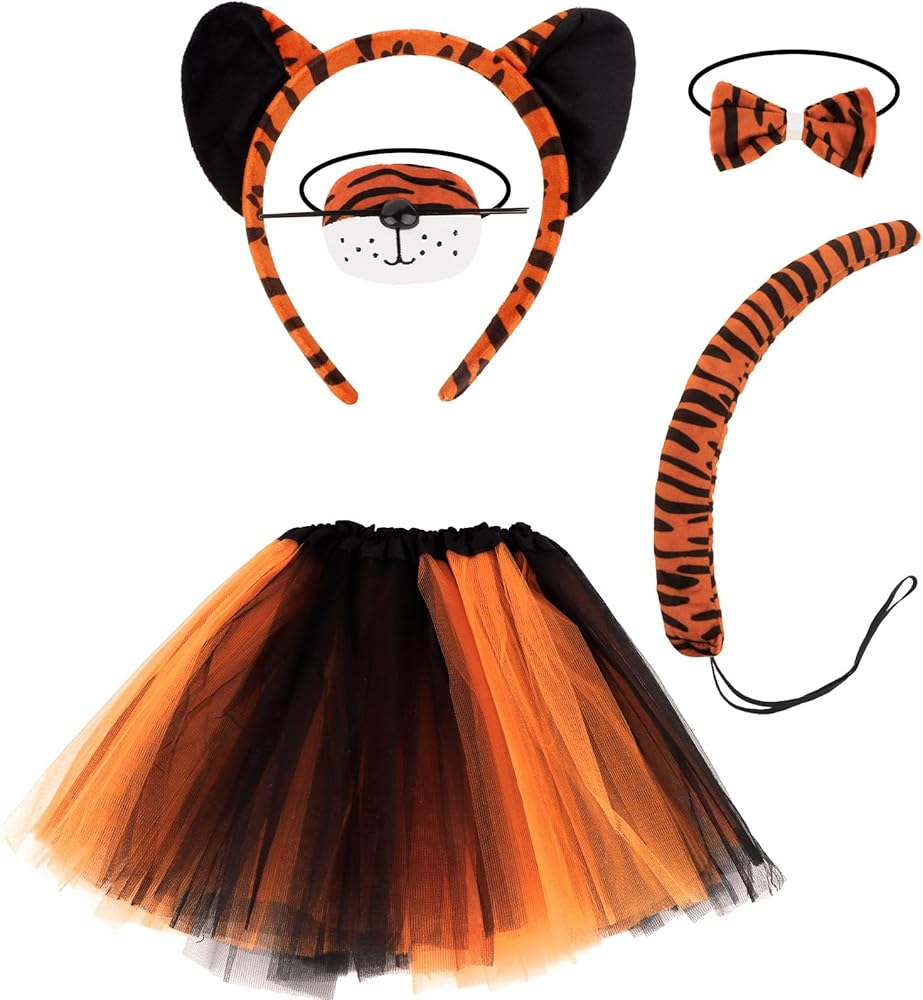 - Fun tiger look: bright orange with bold black stripes for a lively costume style