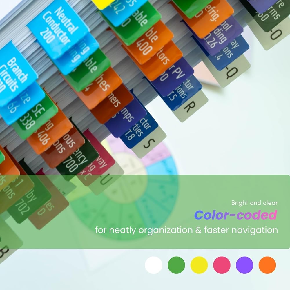 Find What You Need in Seconds No more flipping endlessly through your NEC 2026! These color-coded, laminated tabs make it quick and easy to get to the section you need—whether you're studying, on the job, or inspecting.