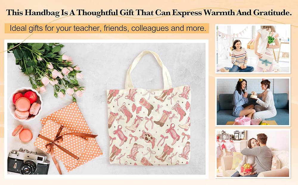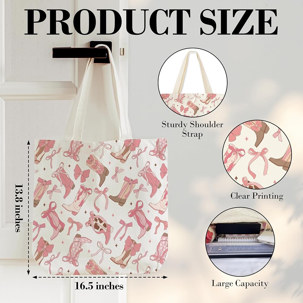 Pink Bow Tote Bags For Women, Pink Bow Canvas Tote Bag, Western Cowgirl Themed Gifts, Birthday Bachelorette Gifts For Cowgirl Family Friends, Cute Shoulder Bag For Work Shopping Travel Holiday, b14