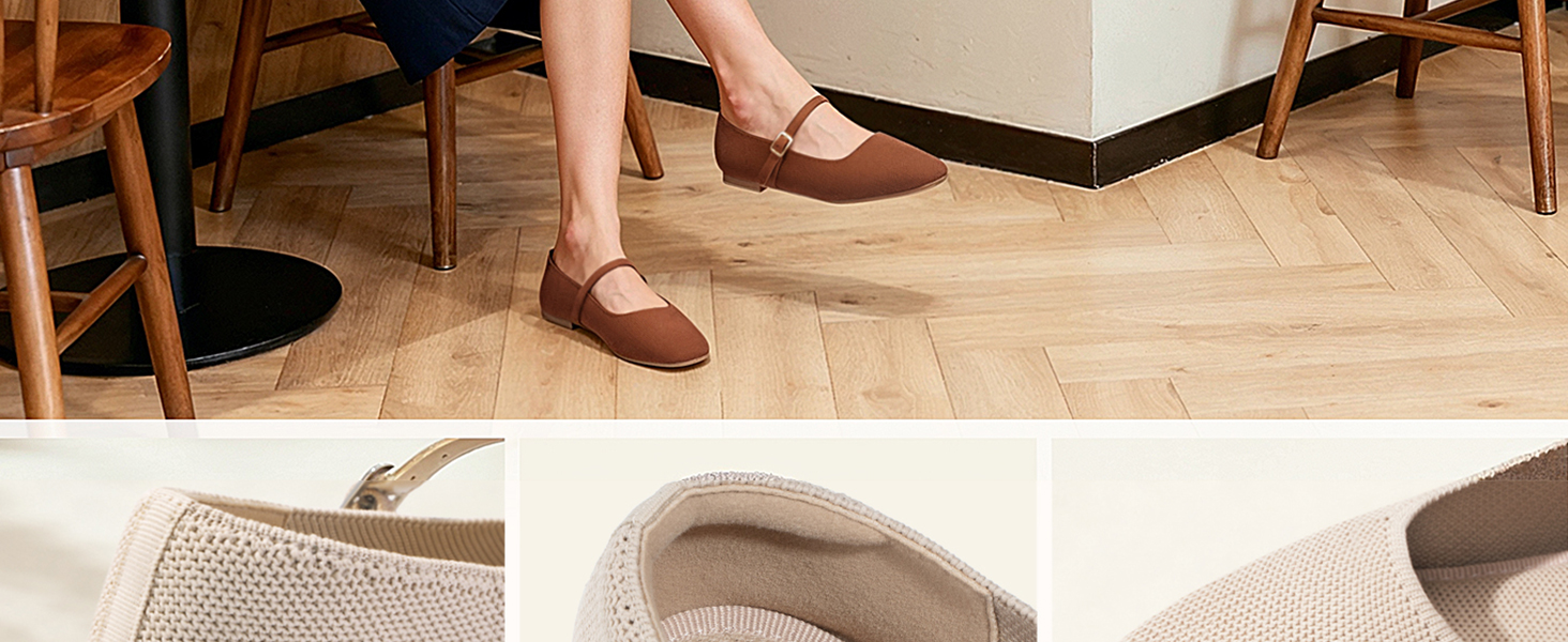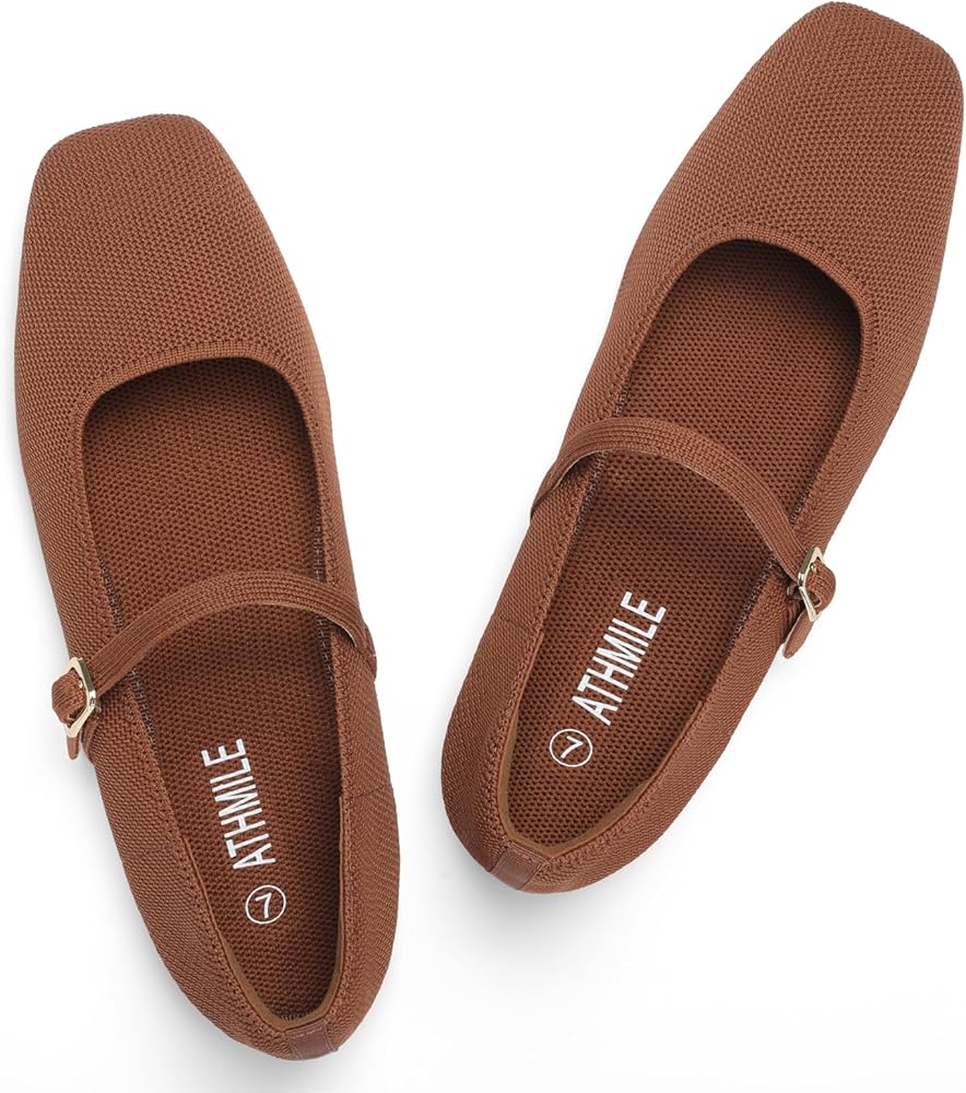 Find your perfect everyday ballet flats! ATHMILE's mary janes shoes women combine style & comfort. Breathable knit & memory foam insole offer all-day comfort. The square toe & padded heel prevent blisters. Perfect as office shoes for women, business casual shoes women, or dress shoes for women. Black flats for women go with everything. Machine washable for easy care. Adjustable strap & flexible sole for a secure fit.