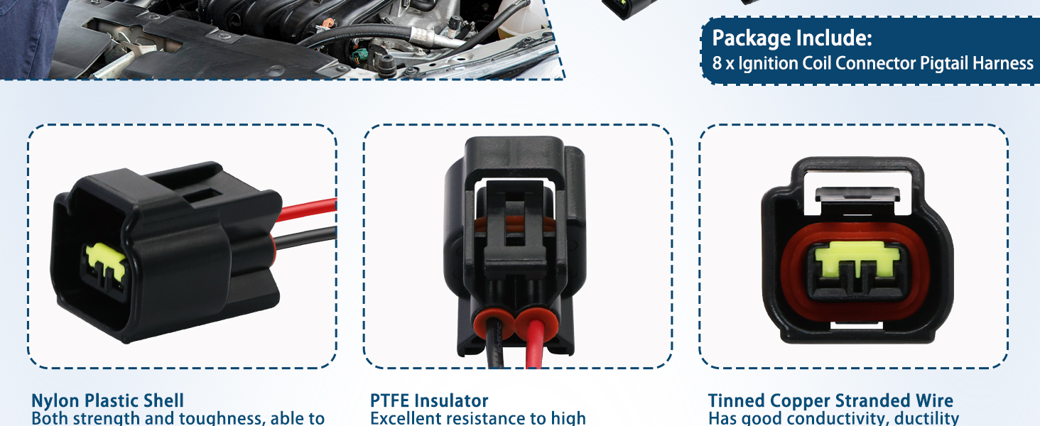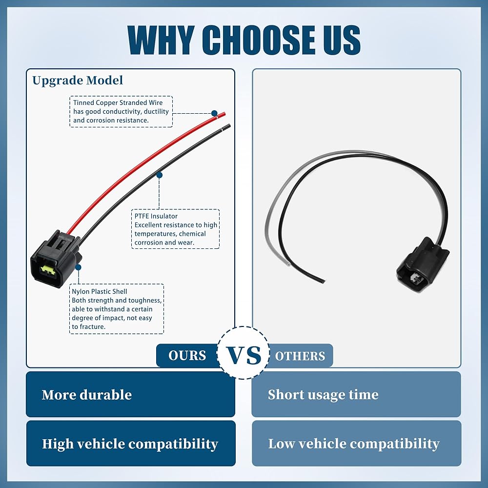 EXCELLENT CONDUCTIVITY: This injector connectors is made of tinned copper stranded wire, which provides higher conductivity and corrosion resistance, extending harness life by more than 30% compared to bare copper wire