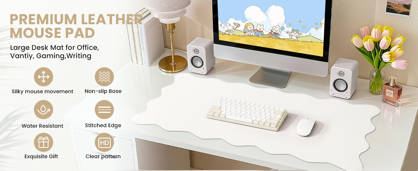 【PROTECT YOUR DESK IN STYLE】Made of high-quality PU leather, this desk mat mouse pad shields your desk from scratches, spills, heat, and everyday wear. Big mousepad sleek design instantly elevates your office or home setup, adding a polished, professional look. The smooth surface ensures effortless writing, typing, and browsing—combining durability with modern elegance. Perfect for any workspace that demands both protection and sophistication