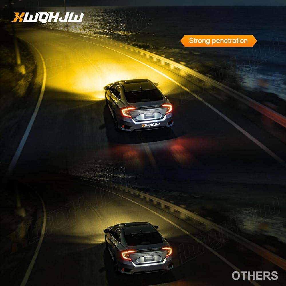 XWQHJW L1B Fog Lights Enhanced Brightness & Pure Yellow Light Features high-quality 7035 CSP chips that deliver a powerful 3500 lumens of 3500K yellow light, providing significantly brighter and more effective illumination in fog, rain, or snow compared to standard factory bulbs.