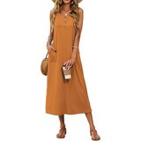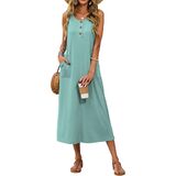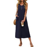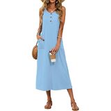 Chic Features:Womens casual dresses features in classic crew neck,sleeveless,button down front,calf length.This midi dress with two square sides pockets.Flowy a line style that creates a flattering look for various body shapes