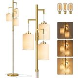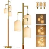 70" Dimmable Floor Lamp Wood Floor Lamps for Living Room Bedroom Mid Century Modern Floor Lamp Gold Standing Lamp Tall Lamps for Office Nursery Reading Elegant Stand Up Lamp, 3 Bulbs Included