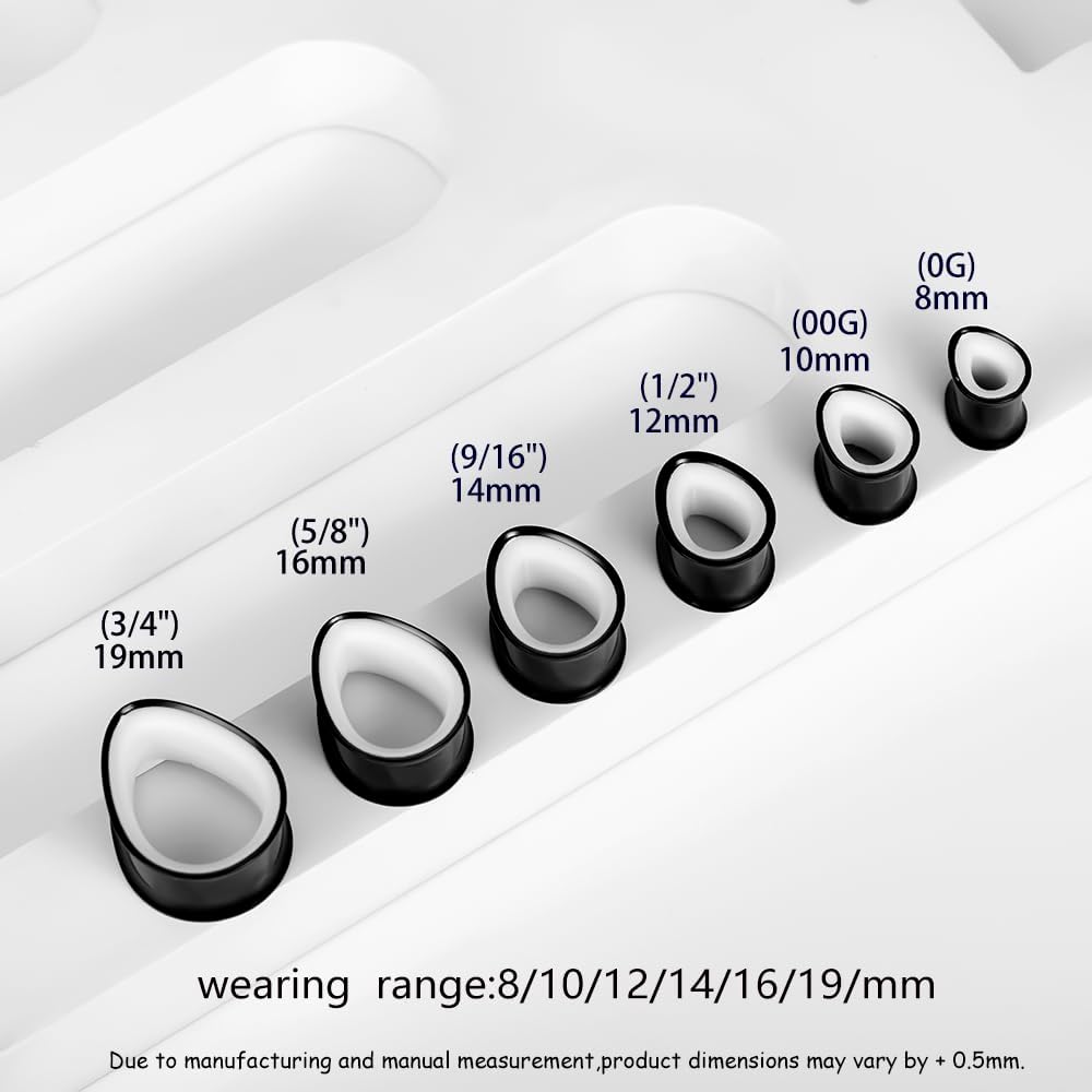 Size Collection: 0g(8mm), 00g(10mm), 1/2"(12mm), 9/16"(14mm), 5/8"(16mm), 3/4"(19mm), covers every stretching stage from 0g to large gauges 1". Perfect for gradual stretching