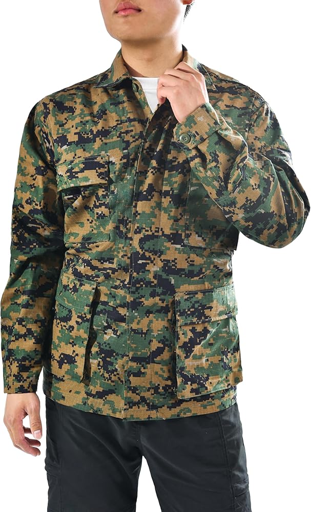 BACKBONE Mens Army Military Battle Dress Uniform BDU Shirt Camo Top Jacket (Woodland Digital - RipStop,Size 2XL), XX-Large