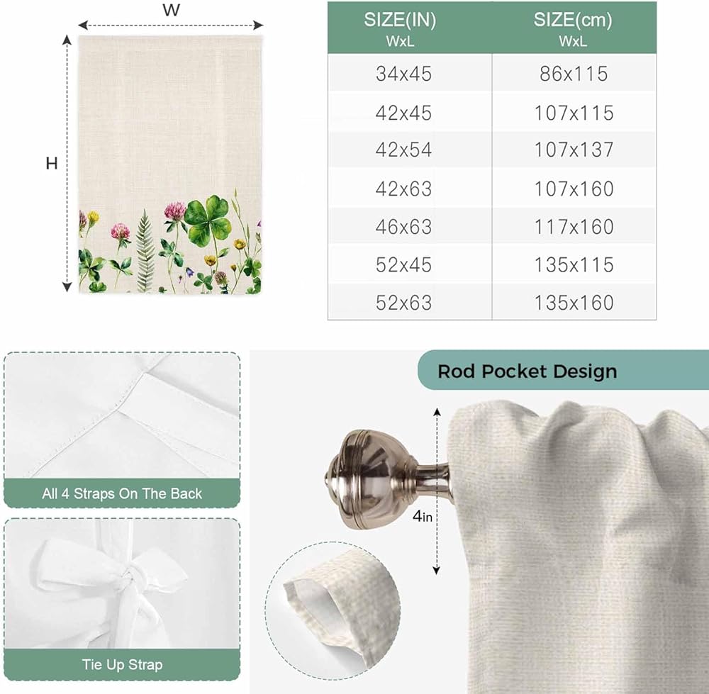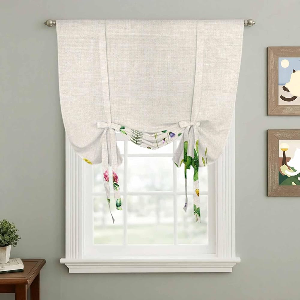 St. Patrick's Day Tie Up Curtains for Window, Colorful Shamrocks Floral Botanical Beige Thermal Balloon Shade Adjustable Rod Pocket Curtains Valance Panels for Kitchen Bathroom Café 52'' x 45''