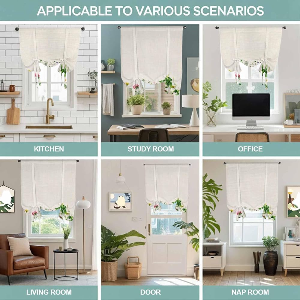 Versatile Scenarios: Adjustable ties fits for windows in different size: small/ large as valances or long curtains. Suitable for bay window, sunroom, kitchen, living room, bedroom, bathroom, café, office, hotel, camper, rv, etc.