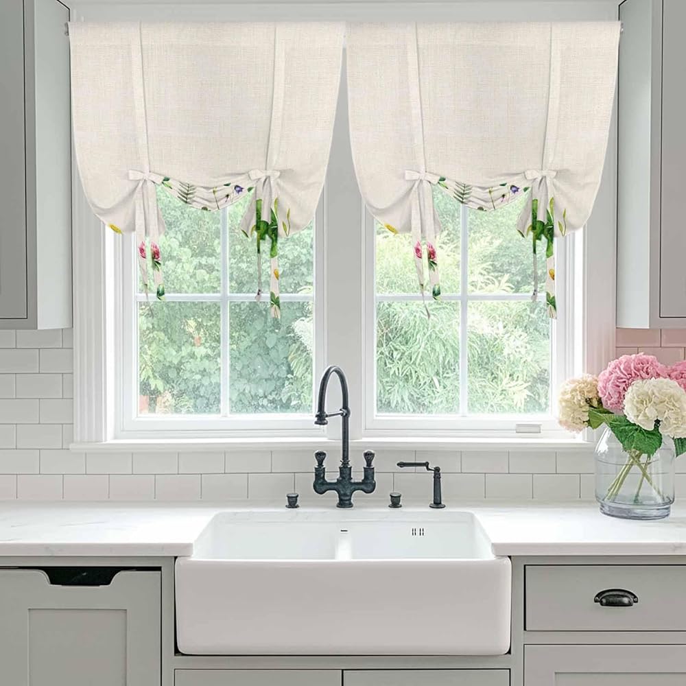 • Decorative & Easy Care: Farmhouse tie up curtains for small/ large windows add a country/ vintage theme to your home decorations. The tie up curtains french are with sturdy fabric and craftsmanship are top notch, neat sewing, adorable curtains with patterns and vivid chic color are your best choice. Simple pleats on the rod pocket add an elegant look. Not only a practical window curtains for you but also an eye-catching decorations. Machine wash, do not bleach, tumble dry.