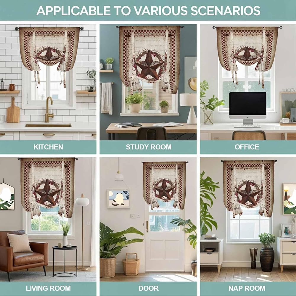 Versatile Scenarios: Adjustable ties fits for windows in different size: small/ large as valances or long curtains. Suitable for bay window, sunroom, kitchen, living room, bedroom, bathroom, café, office, hotel, camper, rv, etc.
