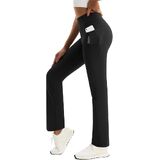 Emlovm Fleece Lined Pants Women Straight Leg Yoga Leggings Winter Warm Pants With Pockets Thermal Waterproof Sweatpants