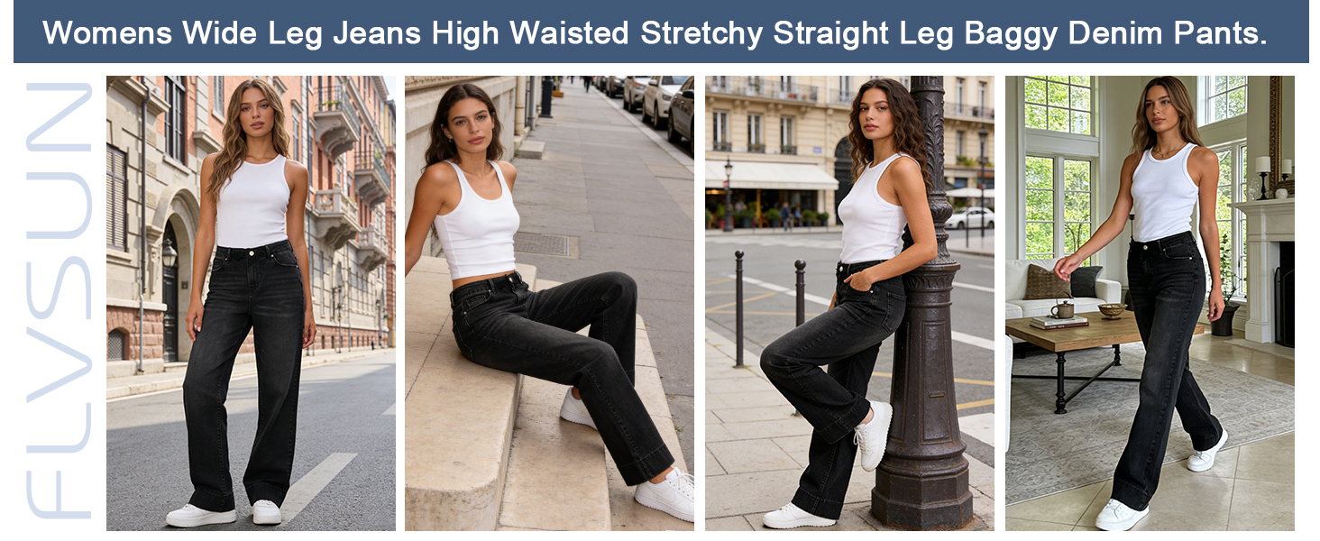 【Occasion】: Wide leg jeans are suitable for various occasions, such as daily wear, shopping in the city, dates, social gatherings and even casual office settings. They can be worn to showcase a sense of trendy and personal charm.