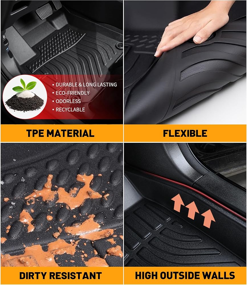 【Safe & Durable】Our floor mats are made of tasteless and safe TPE materials. TPE material has the characteristics of high strength, high elasticity, strong plasticity, and high temperature resistance, so there no foul smell will be produced even in high temperature. Bring you and your families a safer and more comfortable interior car environment.
